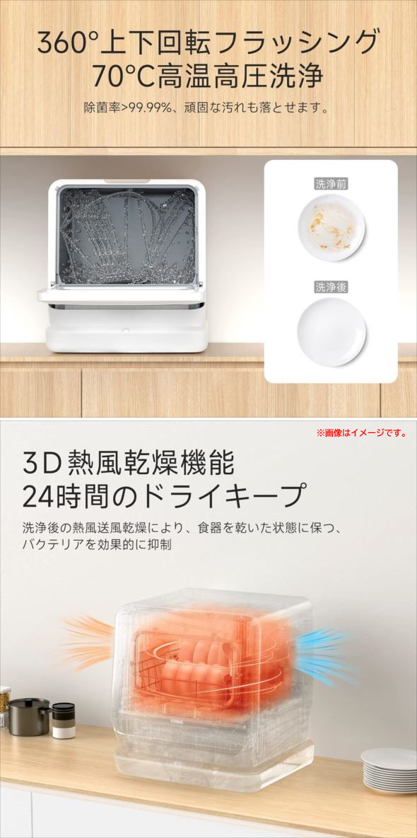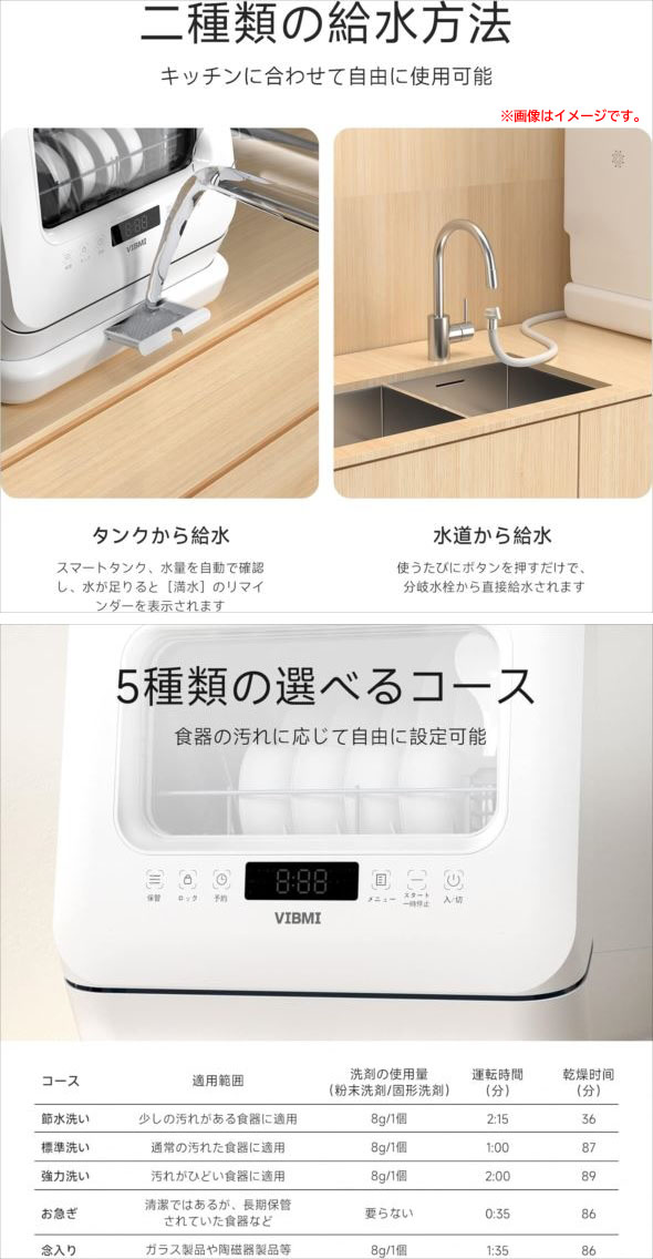 - D7618YO ■0822【未使用品】食器洗い乾燥機 食洗機 工事不要 1~3人用 VIBMI D4P ホワイト 卓上型 小型 食洗器家電