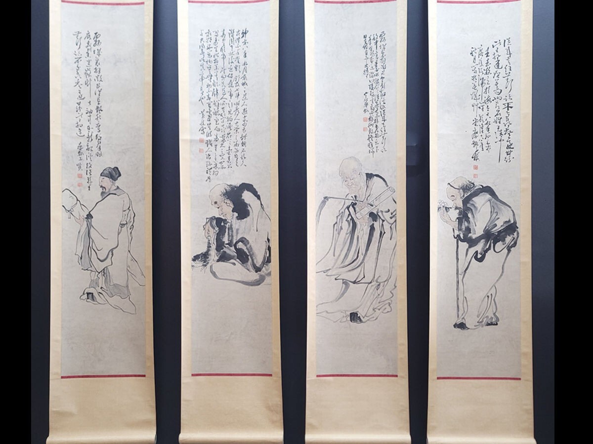 - 中国書画「清 黄慎 人物図四條屏」肉筆紙本 掛け軸 墨寶妙品 書画立軸 巻き物 古美術 旧蔵出