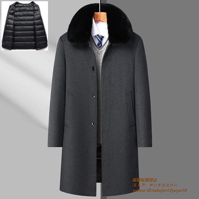 > メンズコート 厚手 ビジネスコート 高級 ダウンジャケット 超希少 ロングコート WOOL ウール 紳士スーツ グレー 2XL