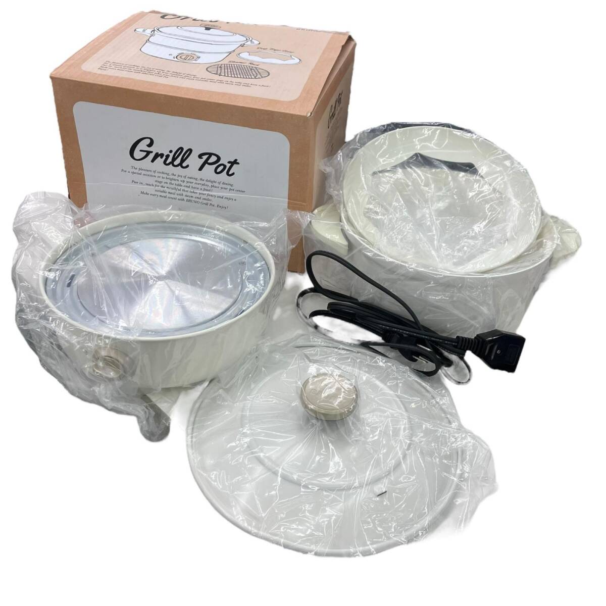 - 186000 通電確認のみ BRUNO ブルーノ グリル鍋 グリルポット BOE029-WH ホワイト 箱入り 鍋 蒸し網 セラミック