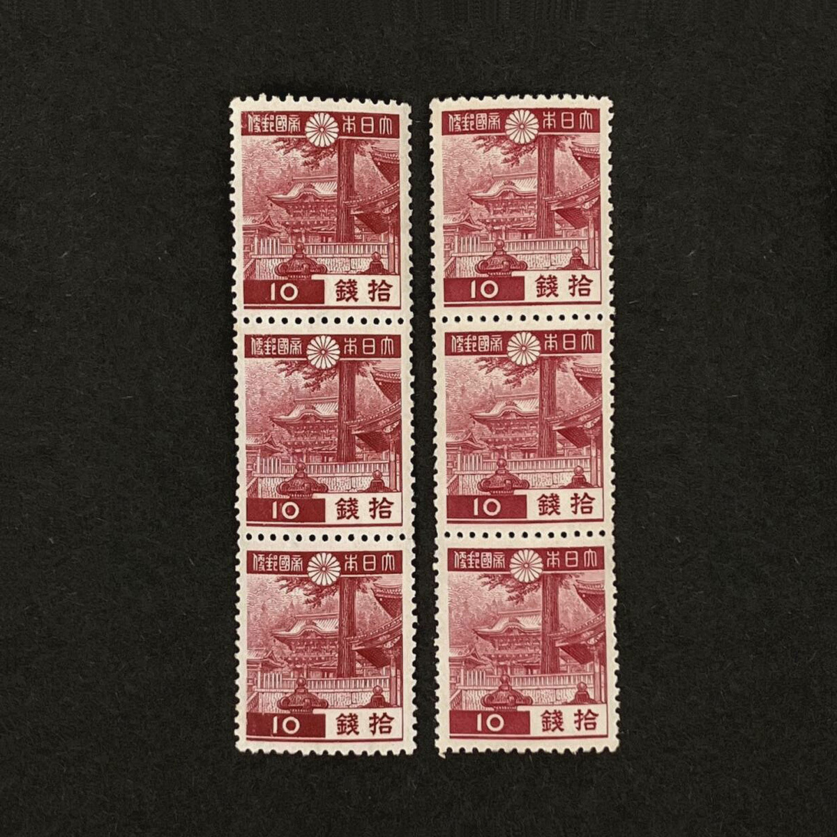 - 【未使用】普通切手 10銭 陽明門 6枚セット 第1次昭和 日光東照宮 1938年 (1)