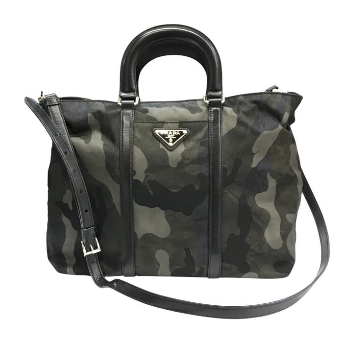 - PRADA プラダ ハンドバッグ レディース 2way ショルダー カモフラージュ 迷彩柄 ナイロン カーキグリーン 中古 T1