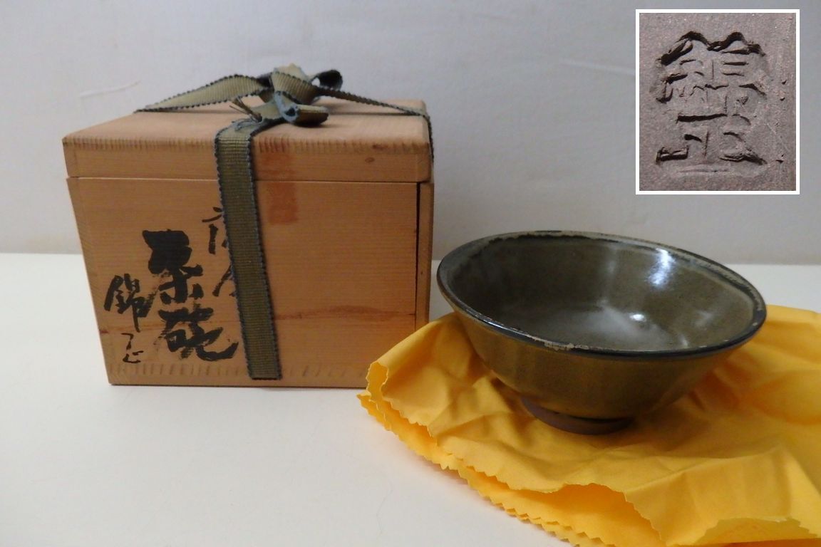 - 薩摩焼窯元 錦江陶芸 錦正印銘 薩摩茶碗 ★/検・茶道具 野崎正二 とんぼ苑