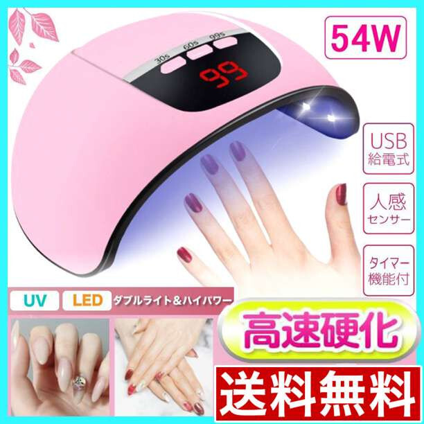 - ネイルライト UVライト レジン硬化 ネイルドライヤー 54W LED ピンクF