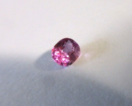 紫ピンクのサファイアです。インクルージョンがありますが、透明感とテリがあります。UVライトで赤く蛍光します。非加熱。