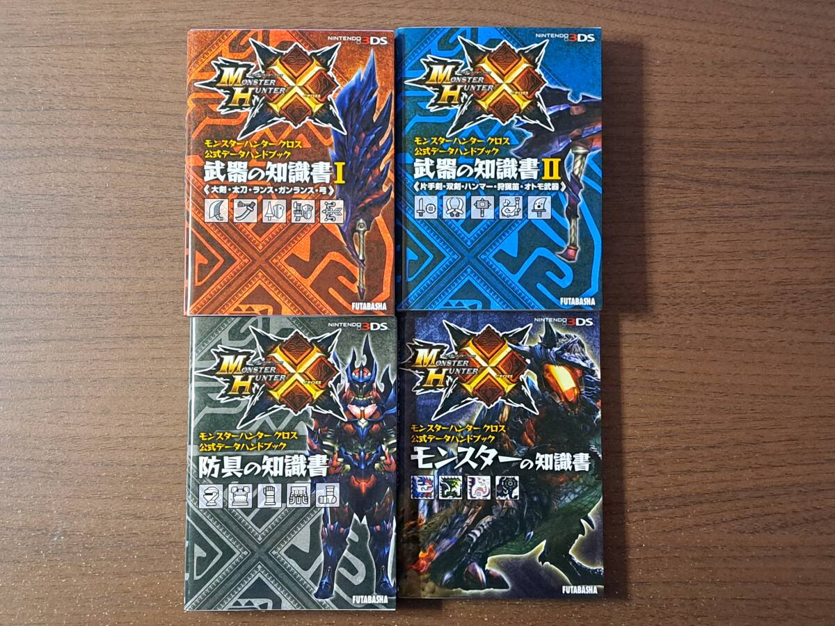 > ★任天堂3DSモンスターハンタークロス公式データハンドブック 武器の知識書1/2/防具の知識書/モンスターの知識書4冊一括★全第1刷状態良