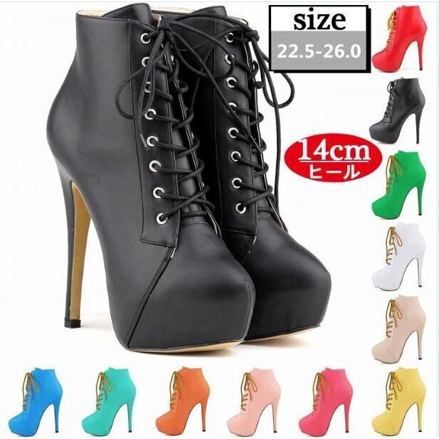 - ショートブーツ レディース レースアップブーツ 美脚 ピンヒール 編み上げ ミドルブーツ ブーティ 袴ブーツ アンクルブーツ22.5~26cm