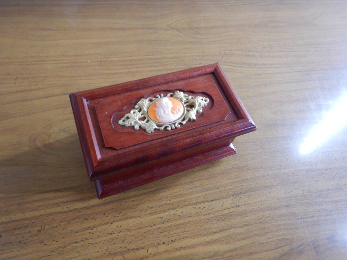 - オルゴール ジュエリーボックス JWELLYBOX 宝石箱 080801 曲名不明 動作確認 Sankyo18.5X10.5H9CM
