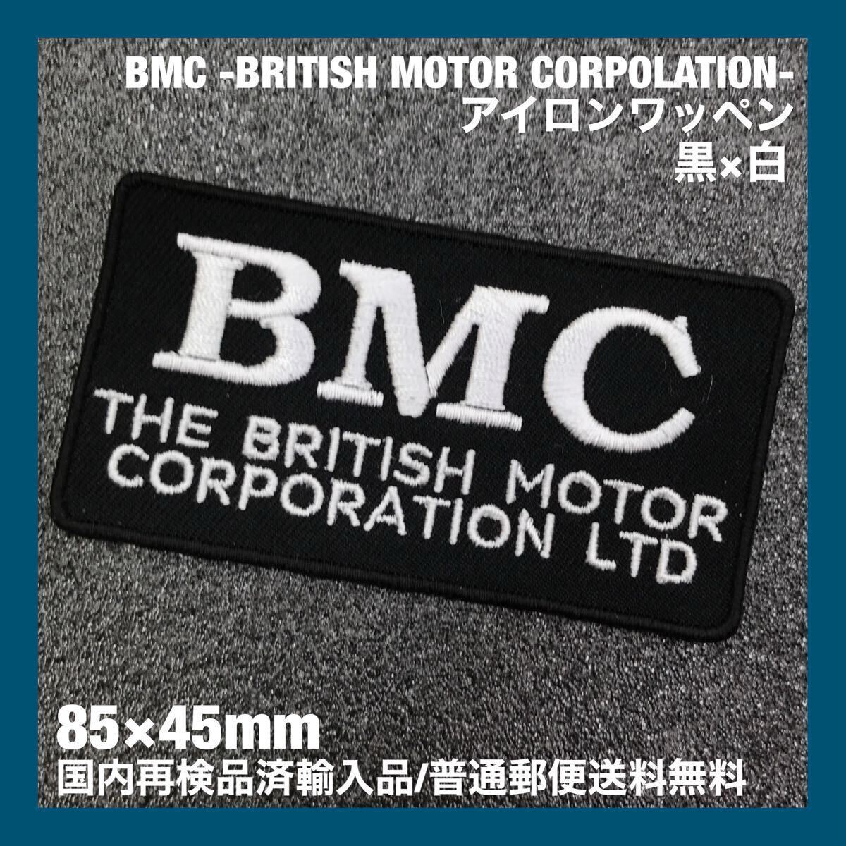 - 黒×白 BMC British Motor Corporation モチーフ アイロンワッペン 85×45mm - MINI cooper ミニ クーパー 旧車 エンスー sonntagpatches