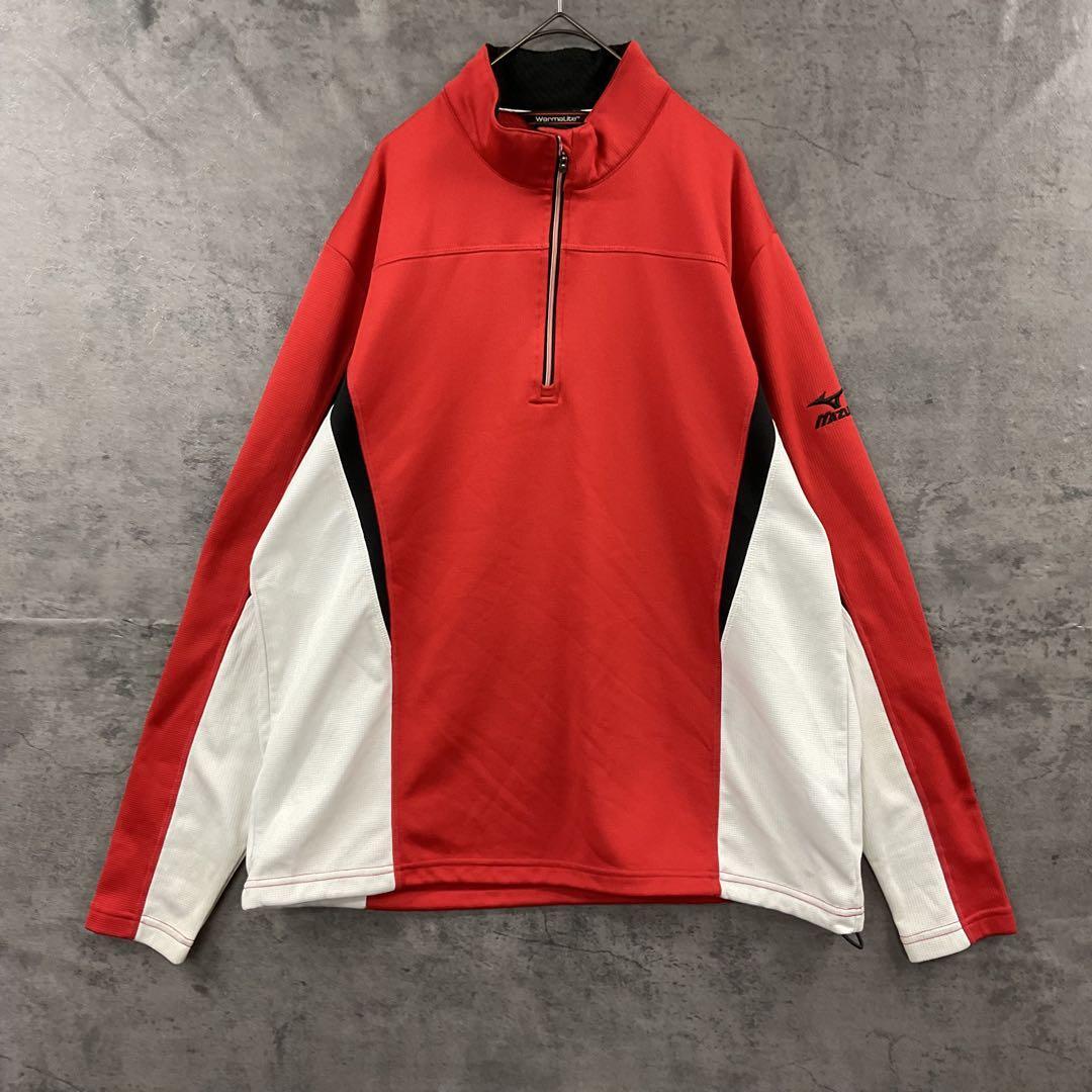 > ミズノ メンズプルオーバー ハーフジップ スポーツウェア 赤 L【5370】
