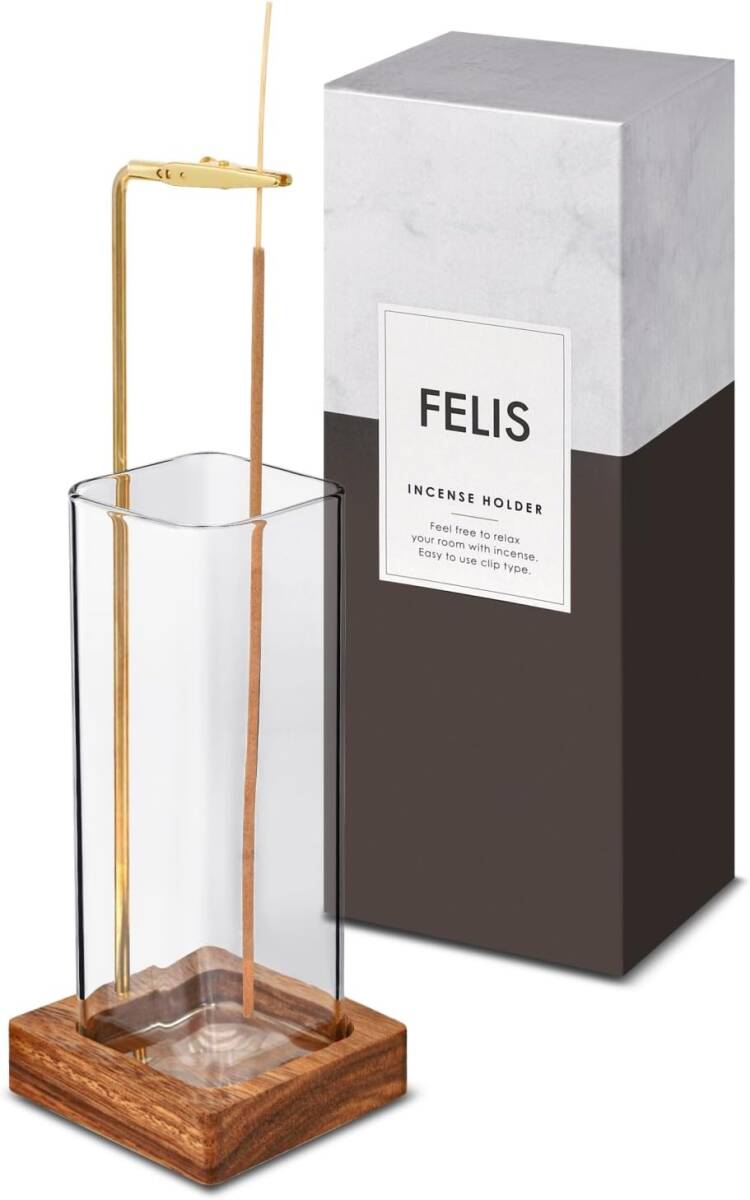- FELIS お香立て [日本企業開発] お香 香炉 線香立て インテリア 灰がこぼれない お洒落 可愛い 吊り下げ 真鍮 ガラス シンプル (ブラウン)