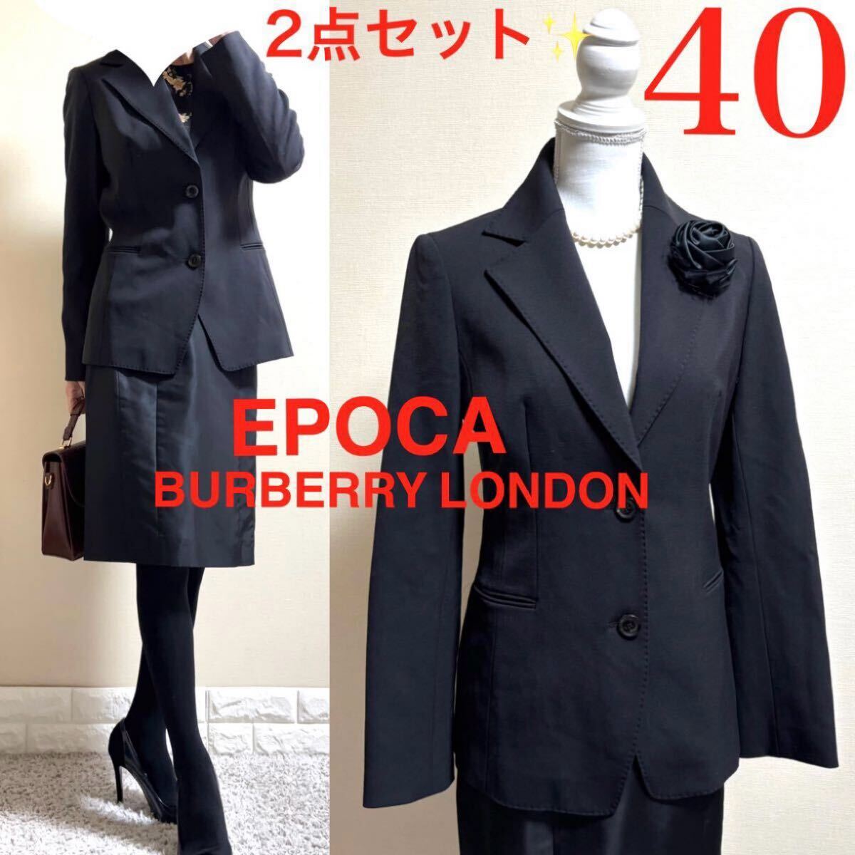 - L スーツ!エポカ ジャケット バーバリー シルクタフタ スカート 黒 L 40