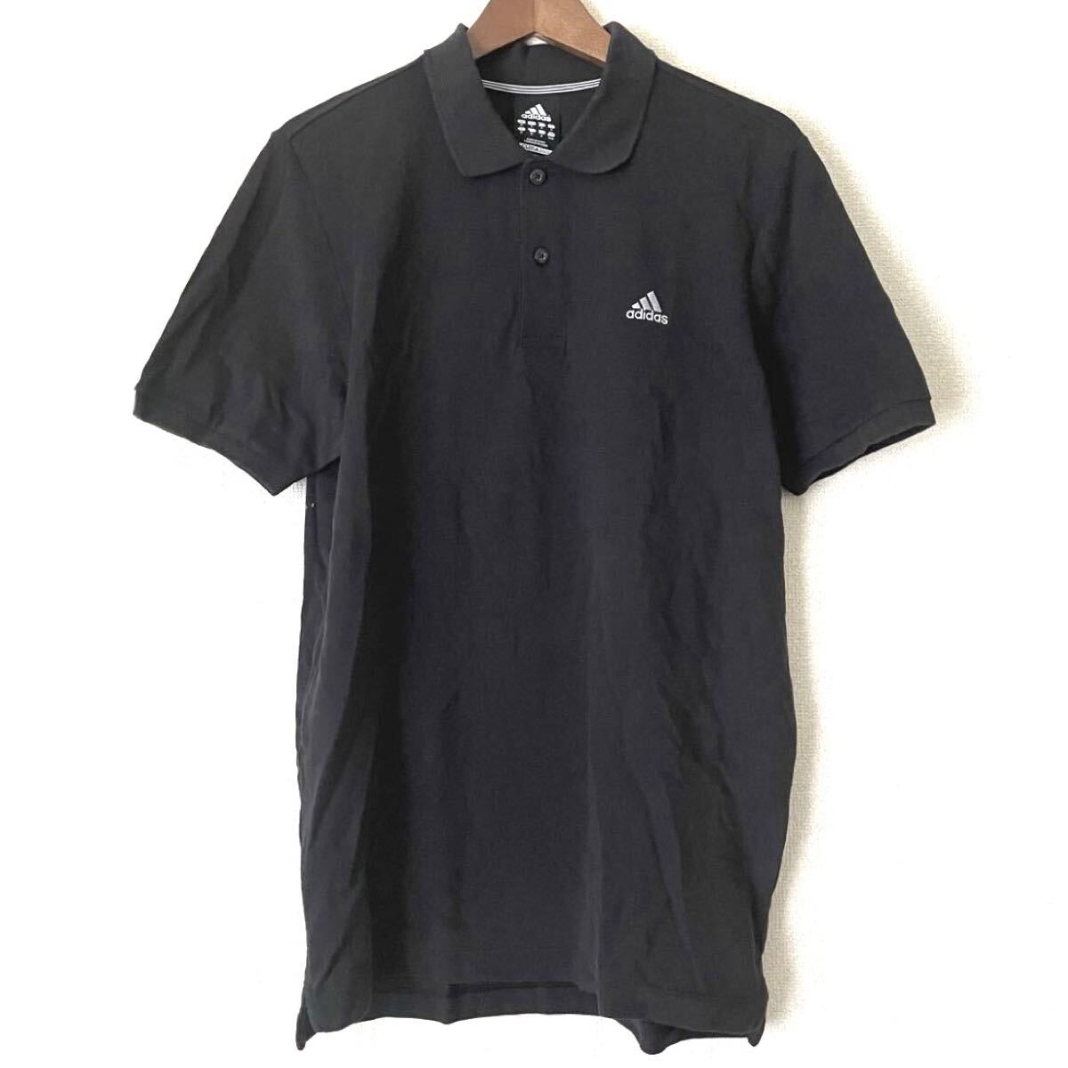 - アディダス 半袖ポロシャツ ブラック O★胸ロゴ シンプル 無地 黒 ゴルフウェア スポーツ メンズ CLIMA365 ヴィンテージ 古着 ビンテージ