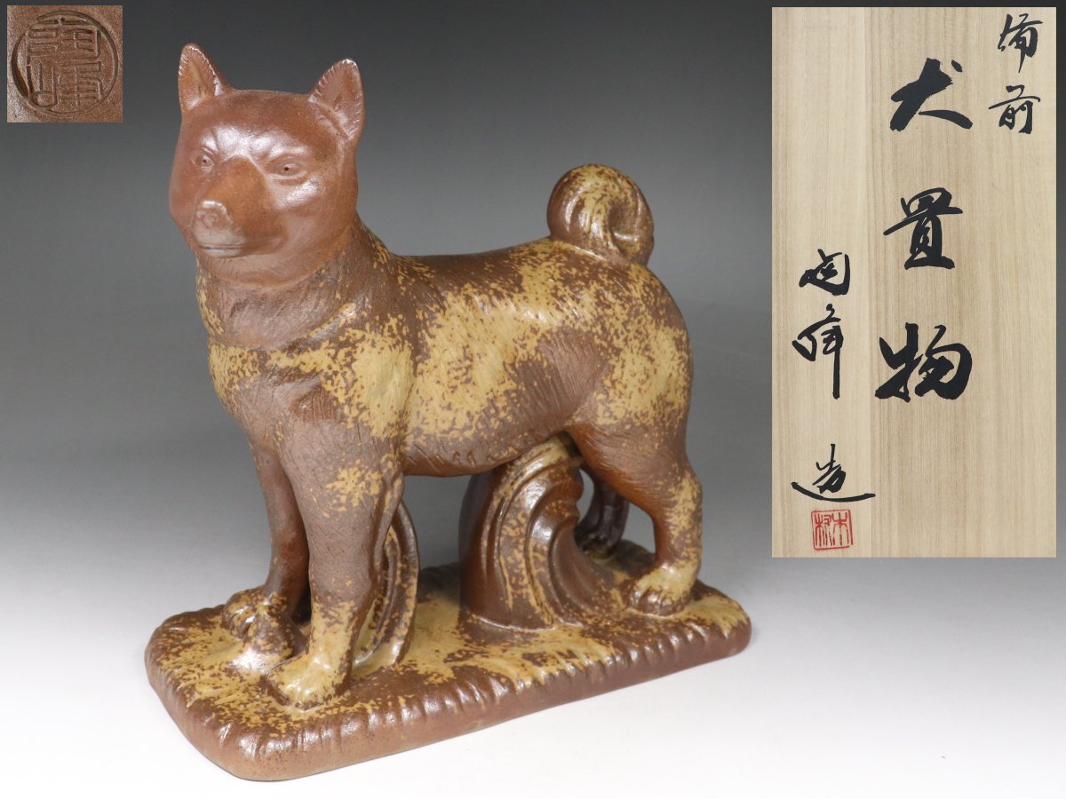- ◆備前・木村陶峰・犬・置物・干支・戌・床置・縁起物・厄除・栞・共箱◆a8172h