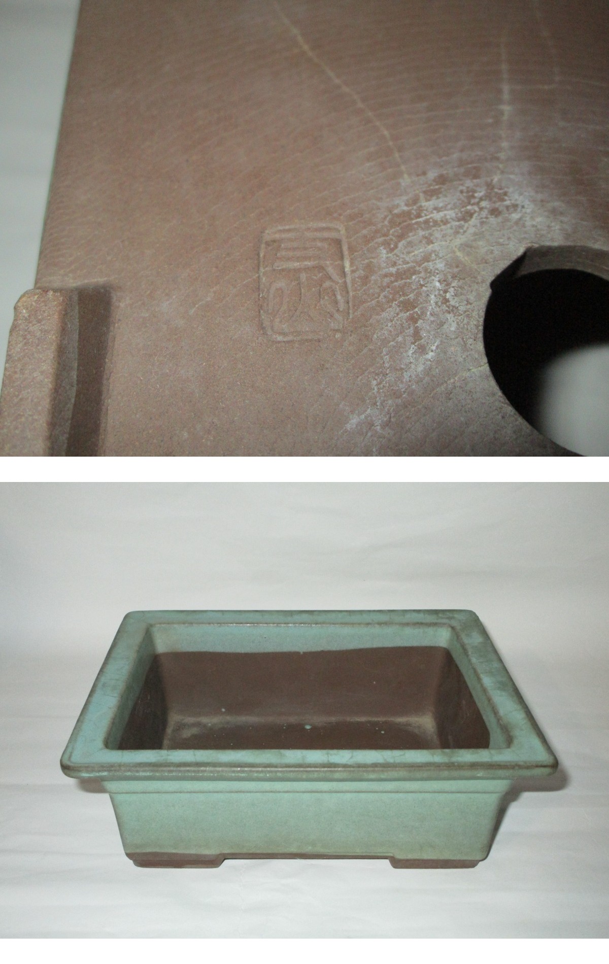 - 【盆栽用具】落款あり 時代 陶器製 四方型 盆栽鉢 (幅19.7cm) (重さ800g)