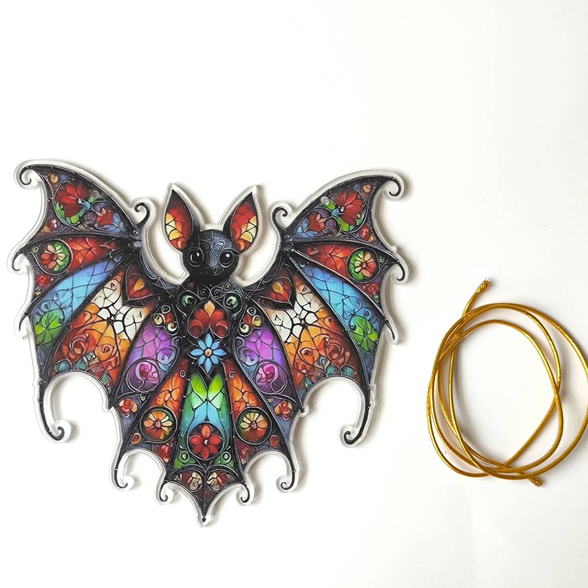 - 【コウモリ・ステンドグラス風】アクリルプレート 飾り サンキャッチャー 紐付き オブジェ お洒落 壁や窓辺の飾りに◎