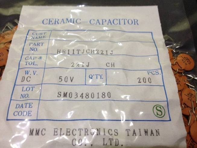 - 円板型セラミックコンデンサ HE11TJCH221J CH特性 50V 220pF 10個入