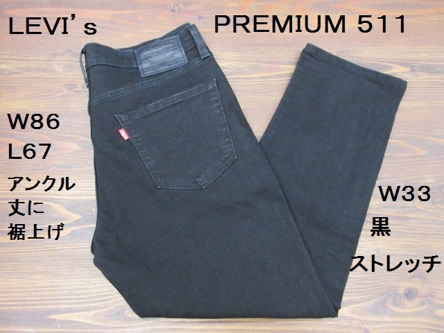 > 33 リーバイス PREMIUM 511 ビッグE スリムフィット ストレッチデニム ブラック ジーンズ アンクル丈 (黒