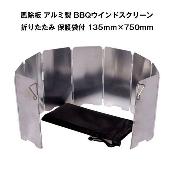 - 風除板 防風アルミ製 BBQ ウインドスクリーン 折りたたみ 保護袋付 軽量9枚板 アウトドア 135*750mm LP-DF135