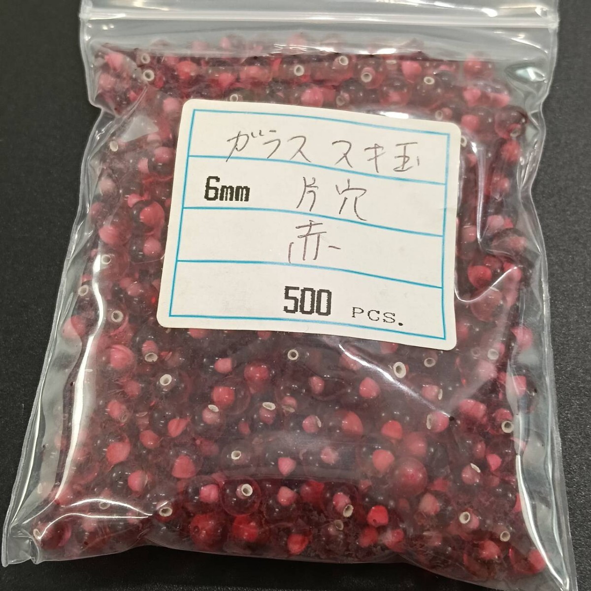 > ☆未使用 片穴 大量 チェコ ガラスビーズ 155g 6mm ラウンド 赤 レッド 大粒 ヴィンテージ パーツ アクセサリー ネックレス B-317