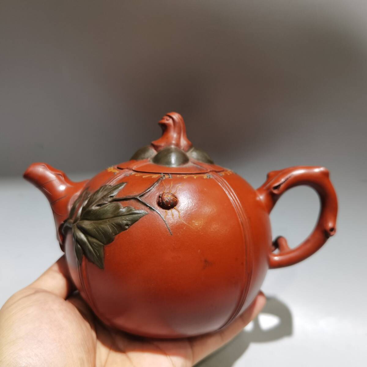- 【超珍館蔵】紫砂壺 事事如意壺 汪寅仙款 紅泥 茶具 茶道品 置物 賞物 古賞物 古董品 古美術品 時代物 旧家蔵出 稀少珍蔵品