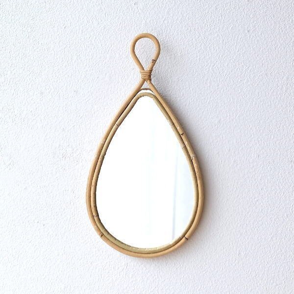 - 鏡 壁掛けミラー ラタン 籐 おしゃれ ウォールミラー ナチュラル かわいい ラタンのドロップミラー 送料無料(一部地域除く) cle6343