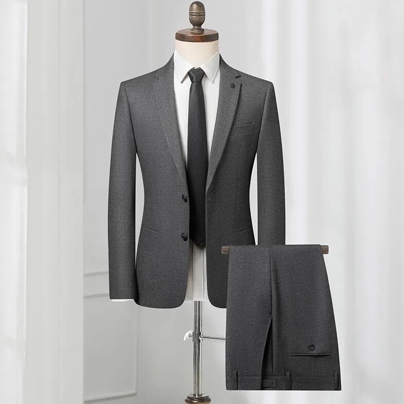 > Y6310-XL グレー 新品 ウール混 セットアップスーツ ストレッチスーツ スリム ワンタック フォーマル 秋冬 ボタン メンズ 洗える ビジネス