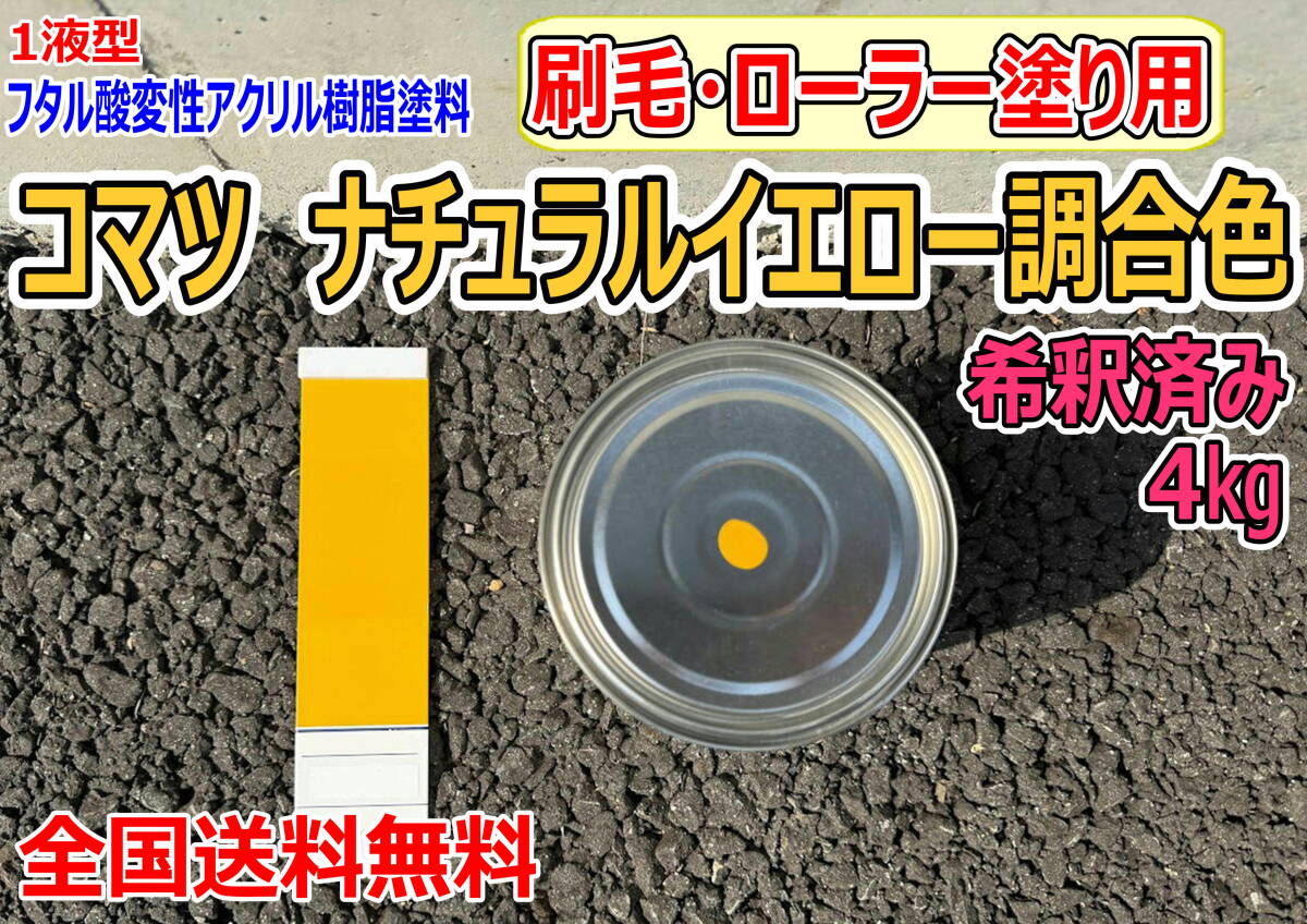 > (在庫あり)コマツ ナチュラルイエロー調合色 刷毛・ローラー用 希釈済み 4kg 超速乾 重機塗装 重機色 建機色 バックホーン ユンボ 送料無料