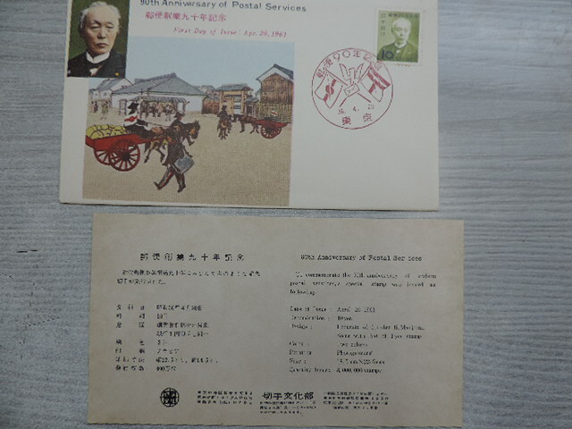 - ★郵便創業九十年記念★ 初日カバー 昭和36年4月20日・東京 10円切手 切手文化部発行