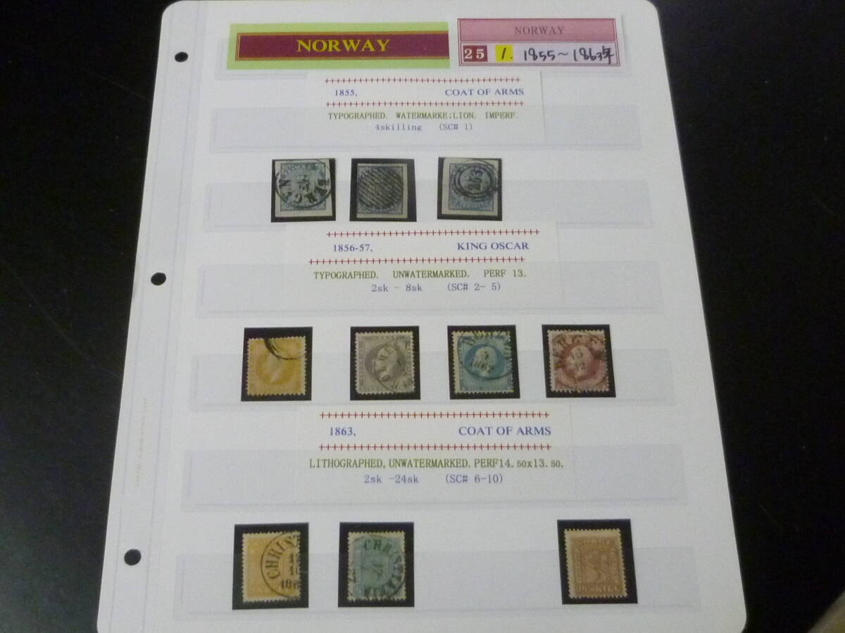 - 25 M №1 ノルウェー切手 クラシック 1855-1863年 SC#1-10の内 8種 計10枚 使用済・1種未使用OH 【SC評価 $1,077】