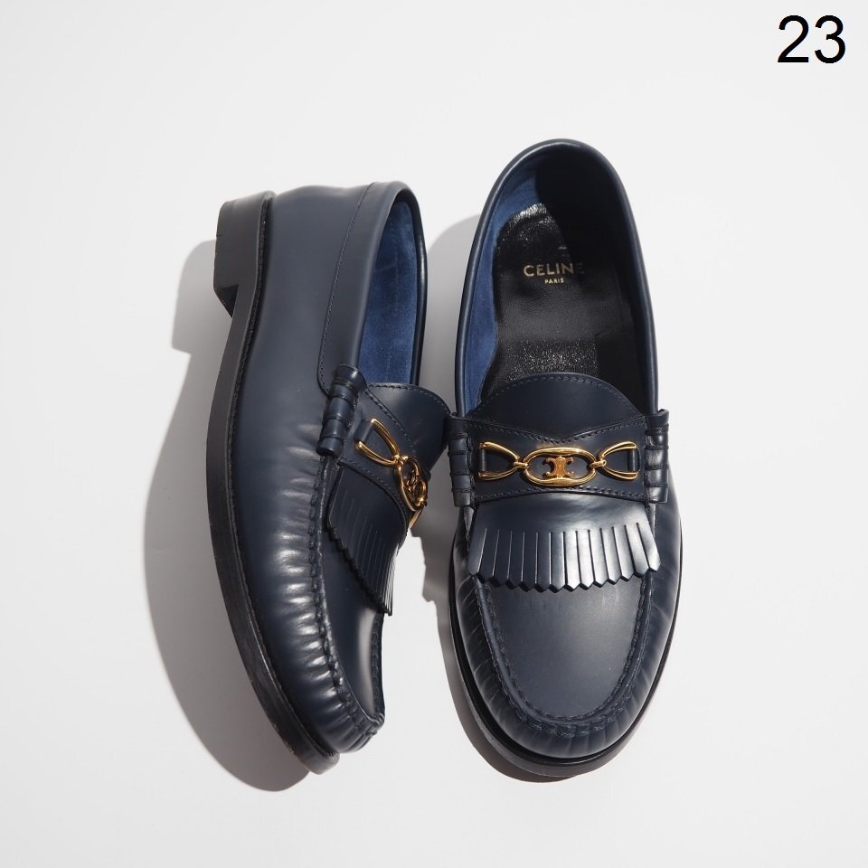 - R1522P ▼CELINE セリーヌ▼ トリオンフ キルトタン ローファー ネイビー 36/23cm レザーシューズ スリッポン 紺 rb mks