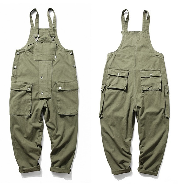 - オーバーオール 無地 サロペット メンズ ゆったり つなぎ オールインワン ワークパンツ 作業服 アメカジ 緑/L