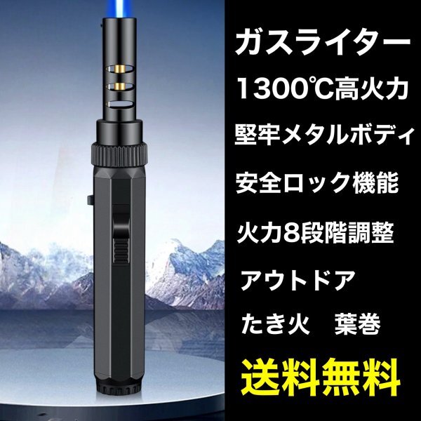 > ガストーチ ガスバーナー トーチライター ガスライター スリム 大型 キャンプ アウトドア たき火 ギフト プレゼント 風防 コンパクト 小型