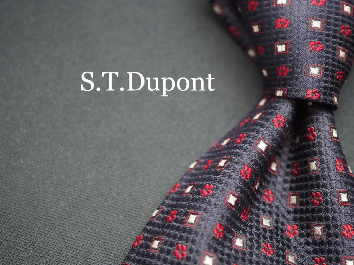 - 美品【S.T.Dupont デュポン】 F1738 ネイビー系 SILK ブランド ネクタイ 古着 良品