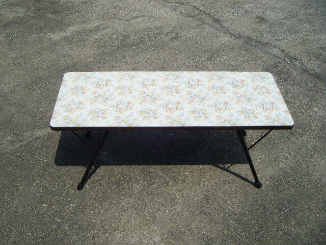 - 昭和レトロ メラックス編台 MERAX KNIT TABLE work table 編み機台 編み機テーブル 作業台 作業テーブル 花柄 昭和柄 折り畳みテーブル BBQ