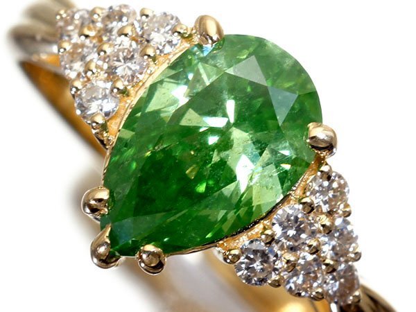 > 【ジュエリー極】CGLソ付 超大粒極上1粒グリーンダイヤモンド1.422ct(SI-2)&ダイヤ0.24ct 超高級K18YGリング h7719izl【送料無料】