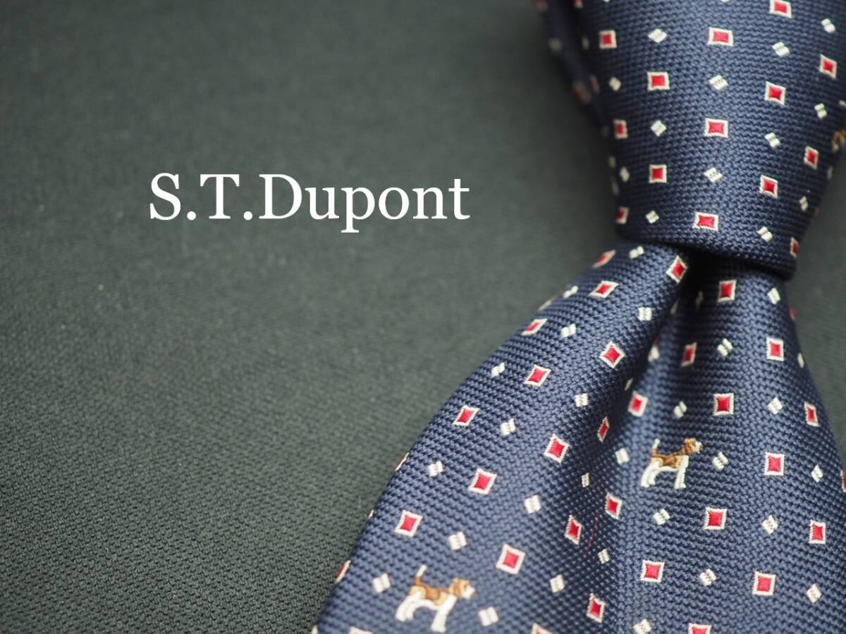 - 美品【S.T.Dupont デュポン】 F1744 ネイビー 犬 SILK ブランド ネクタイ 古着 良品