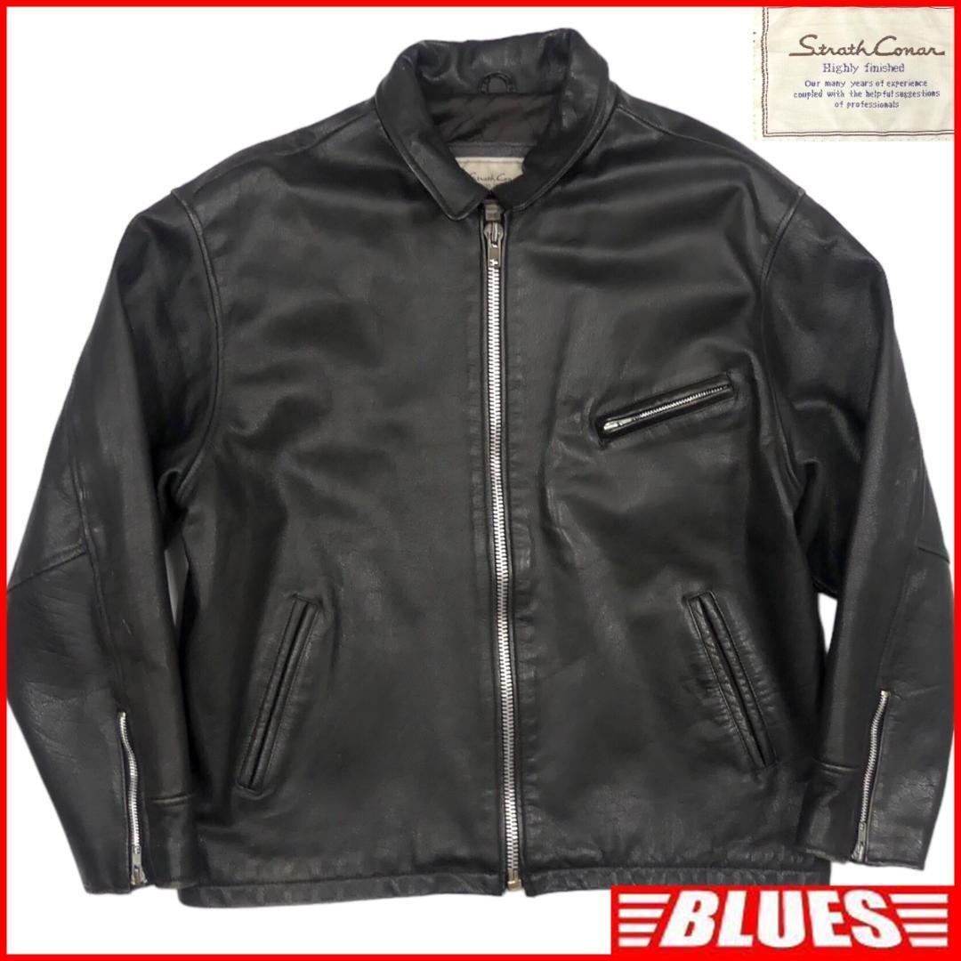 - 即決★Strath Conar★メンズXL レザーライダースジャケット ストラスコナー 黒 立襟 本革 シングル 本皮 パンクロック ツーリング