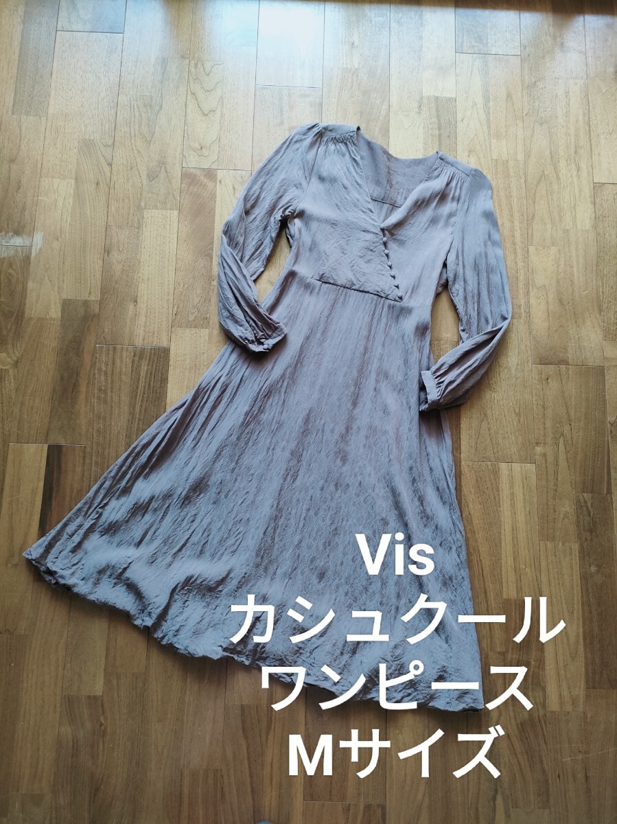 - Vis 総柄 春秋 カシュクール 長袖 レーヨン ロングワンピース ブラウン M