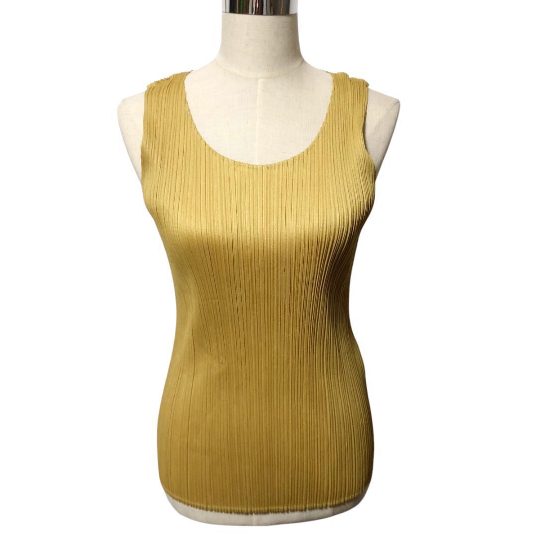 - PLEATS PLEASE プリーツプリーズ プリーツ カットソー ノースリーブ F マスタード 日本製 イッセイミヤケ レディース M5