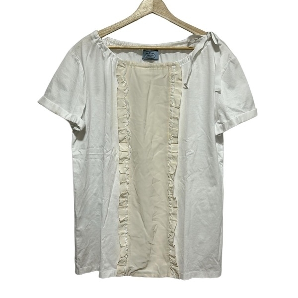 - プラダ PRADA 半袖カットソー サイズM - 白×アイボリー レディース レース/フリル トップス