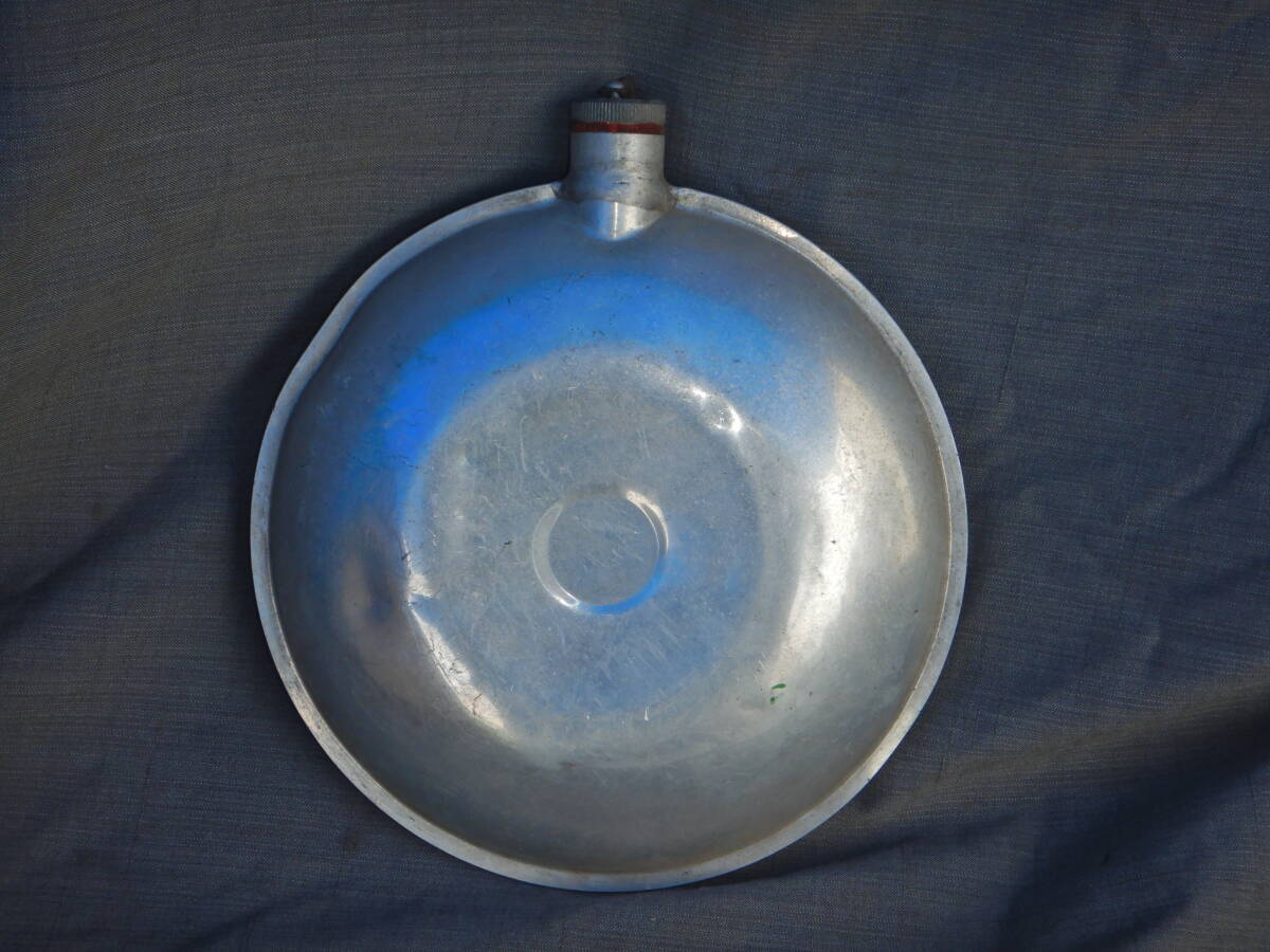 - アンティーク 円盤型水筒 日本製 水筒 スキットル アウトドア キャンピング 古いチェーン付き