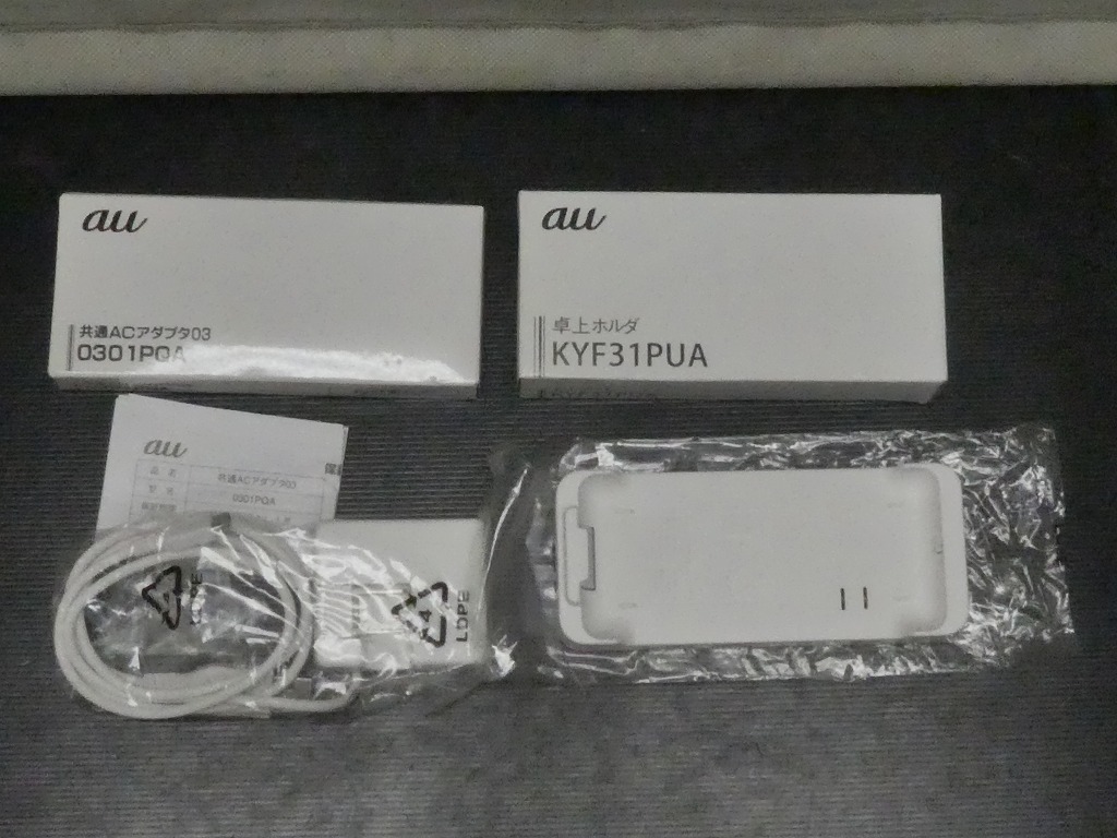 > ●au 【au純正】 卓上ホルダ KYF31PUA 共通ACアダプタ03 充電器 0301PQA 元箱付 携帯電話 ガラケー充電器●