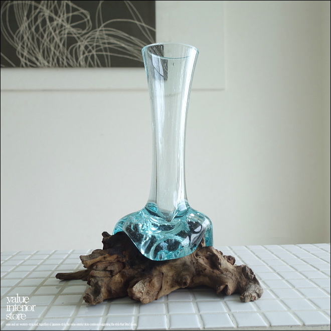 - 硝子フラワーベースSin10 花瓶 プリミティブガラスベース 手作り 一輪挿し 一点物 ハンドメイド 無垢材 自然な様