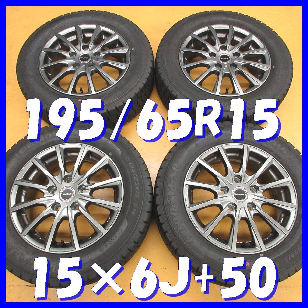 - □送料無料 A4s■ 社外アルミ ■ 15×6J+50 / 5H PCD114.3 ◆ スタッドレス ◆ 195/65R15 グッドイヤー【冬4本セット】※ノア,ヴォクシー