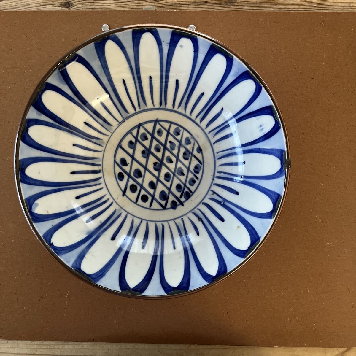 - レトロ 和食器 大鉢 アンティーク器 年代物 ひまわり柄 側面に模様 皿