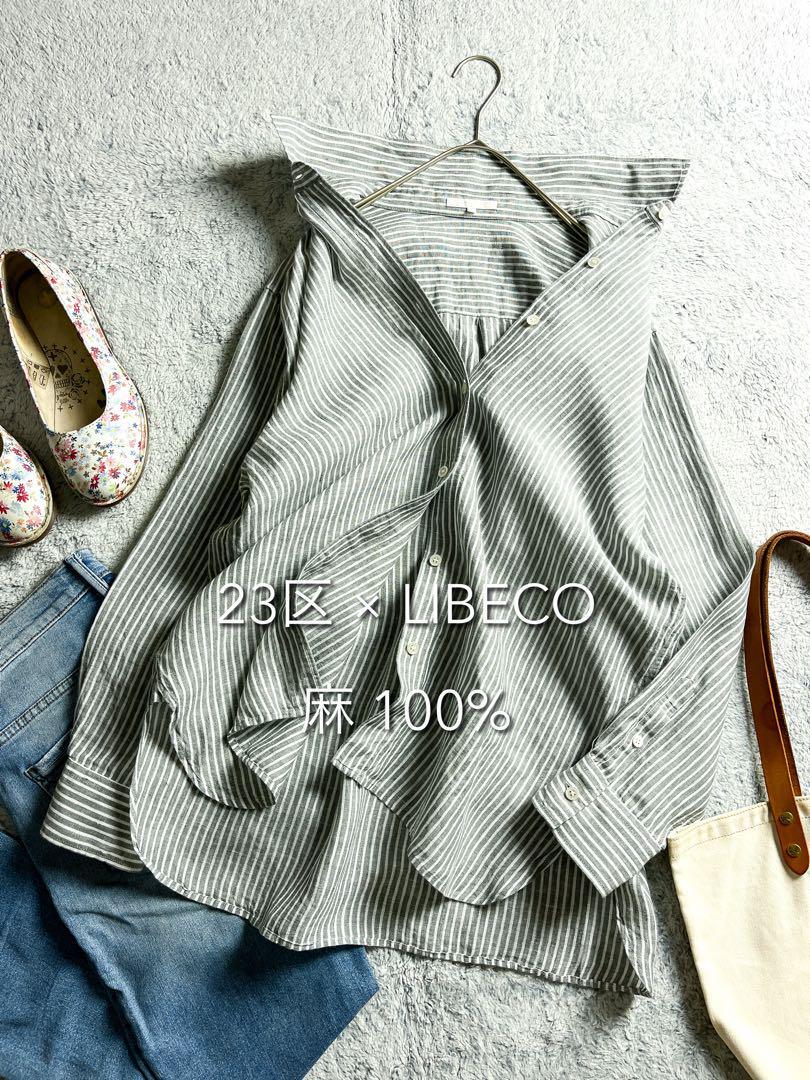 - 【23区】LIBECO 2wayストライプ柄リネンカシュクールシャツ 44 灰色