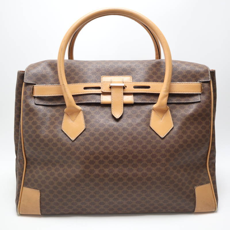 > CELINE セリーヌ マカダム PVC/レザー ボストンバッグ ハンドバッグ ブラウン/ベージュ M08-k147