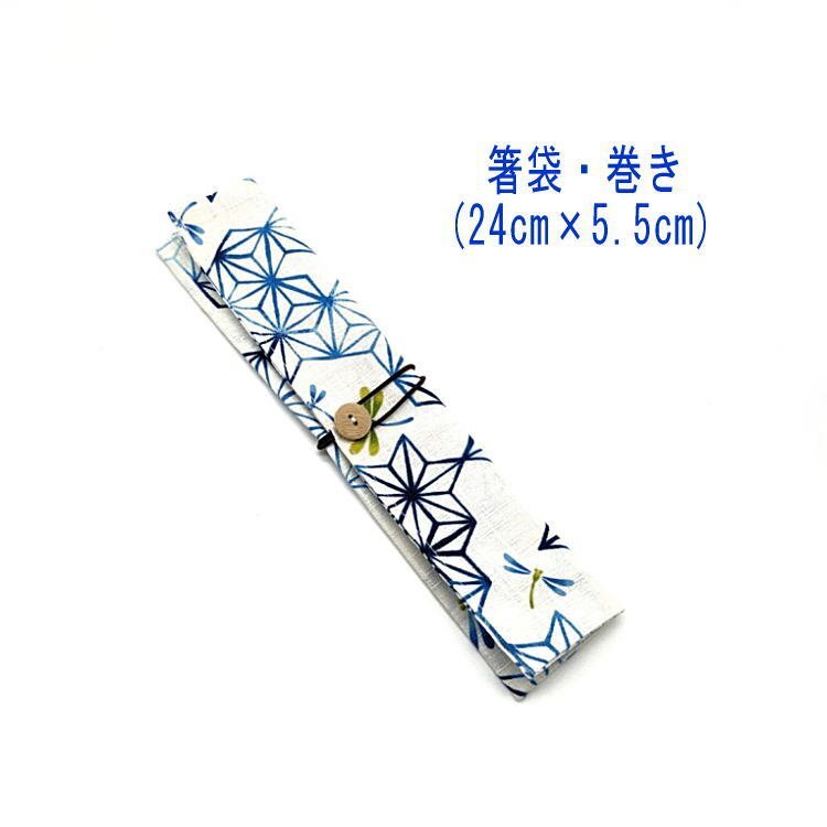- 箸袋・巻き(24cm×5.5cm)【和柄 トンボ&麻の葉柄 ホワイト】ドビー織り はし袋 箸入れ 箸ケース マイ箸 和雑貨 和小物 お祝い とんぼ 昆虫