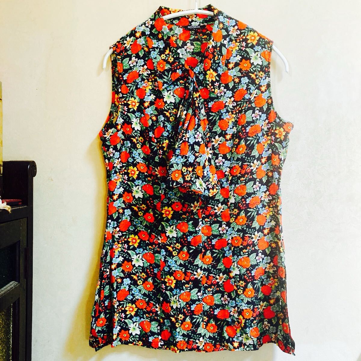 - 【美品】kookai クーカイ★コットン100%ボウタイリボン 両脇スリット ロゴボタン ノースリーブフローリッシュチュニックブラウス★着丈70